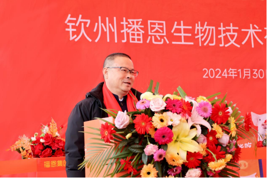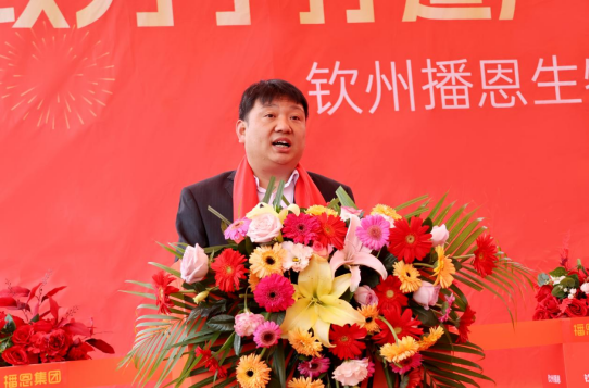 欽北區(qū)副區(qū)長(zhǎng)黃如龍,廣西飼料工業(yè)協(xié)會(huì)會(huì)長(zhǎng)、廣西大學(xué)教授沈水寶博士,播恩集團(tuán)廣西特區(qū)總經(jīng)理曾紹鵬,欽州工廠總經(jīng)理?xiàng)畲?,分別做了致辭。