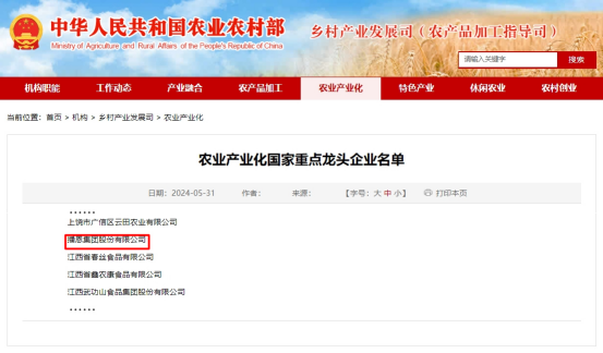“農(nóng)業(yè)產(chǎn)業(yè)化國(guó)家重點(diǎn)龍頭企業(yè)”是我國(guó)農(nóng)業(yè)企業(yè)中含金量極高的榮譽(yù)之一,由農(nóng)業(yè)農(nóng)村部、國(guó)家發(fā)展和改革委員會(huì)、財(cái)政部、商務(wù)部、中國(guó)人民銀行、國(guó)家稅務(wù)總局、中國(guó)證券監(jiān)督管理委員會(huì)、中華全國(guó)供銷(xiāo)合作總社等8個(gè)國(guó)家部門(mén)共同認(rèn)定。其認(rèn)定過(guò)程十分嚴(yán)格,涵蓋企業(yè)申報(bào)、各地推薦、專(zhuān)家評(píng)審、部門(mén)審核、媒體公示等多個(gè)環(huán)節(jié),只有最終達(dá)標(biāo)的企業(yè)才可獲此殊榮。