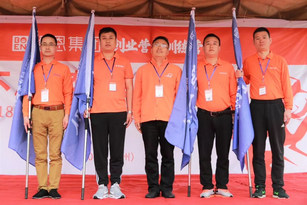 創(chuàng)業(yè)營(yíng)開(kāi)營(yíng)現(xiàn)場(chǎng),營(yíng)銷(xiāo)總監(jiān)曹劍波(圖中央)為中隊(duì)長(zhǎng)授中隊(duì)旗